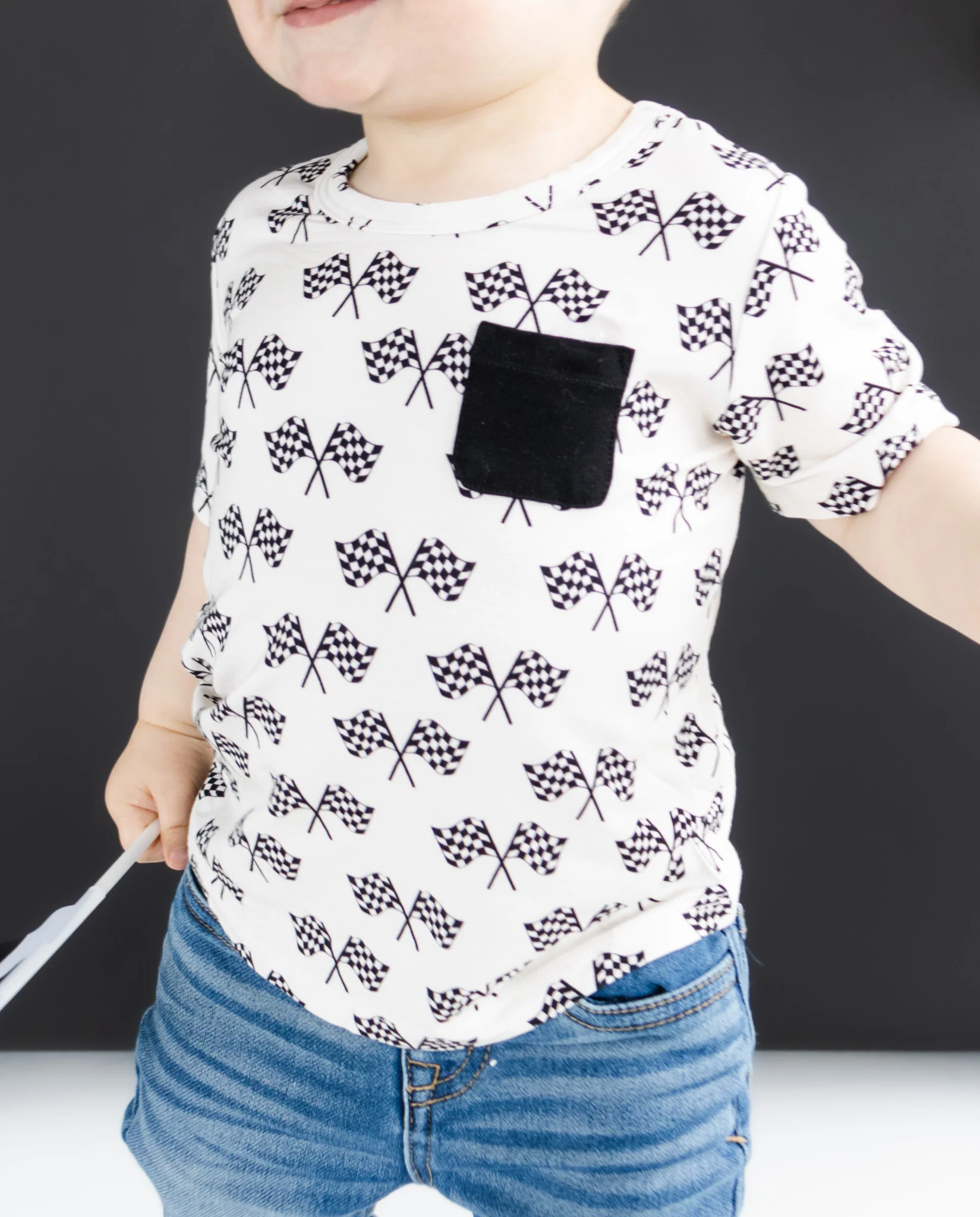 Take your style to the finish line with our Race Day Dream Pocket Tee. Made with comfortable bamboo material, this short sleeve top features a fun race print that will surely turn heads. Get ready to dream big and race in style.