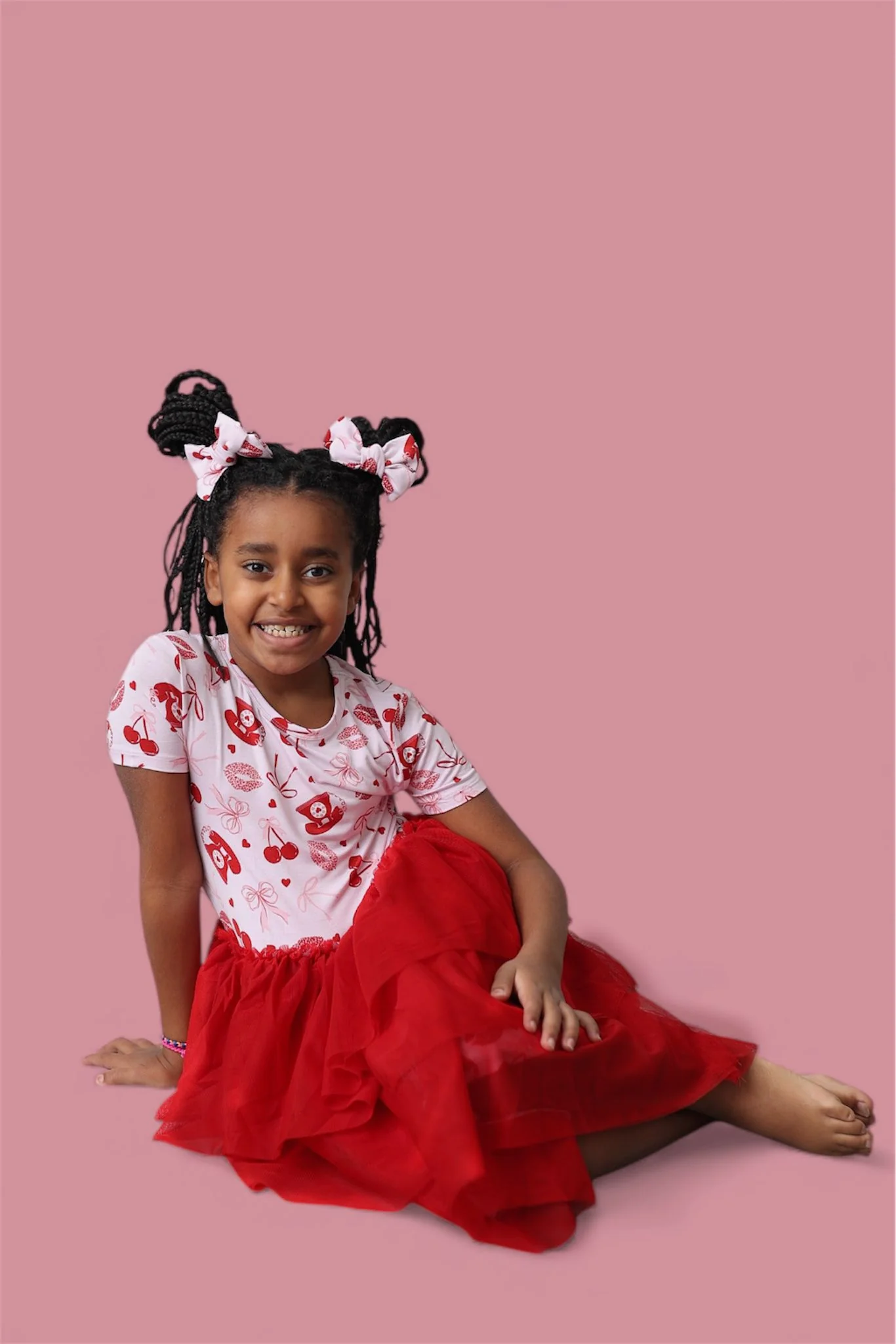 Your little sweetheart will be ready to twirl in this flirty, vintage-Valentine inspired tutu dress! The Sealed With Love Dream Tutu Dress features a soft bamboo bodice printed with retro telephones, kissy lips, bows, and cherries, paired with a layered tulle skirt in a rich cherry-red hue. It’s comfy enough for all-day wear yet dressed up for photo-ready moments.
